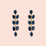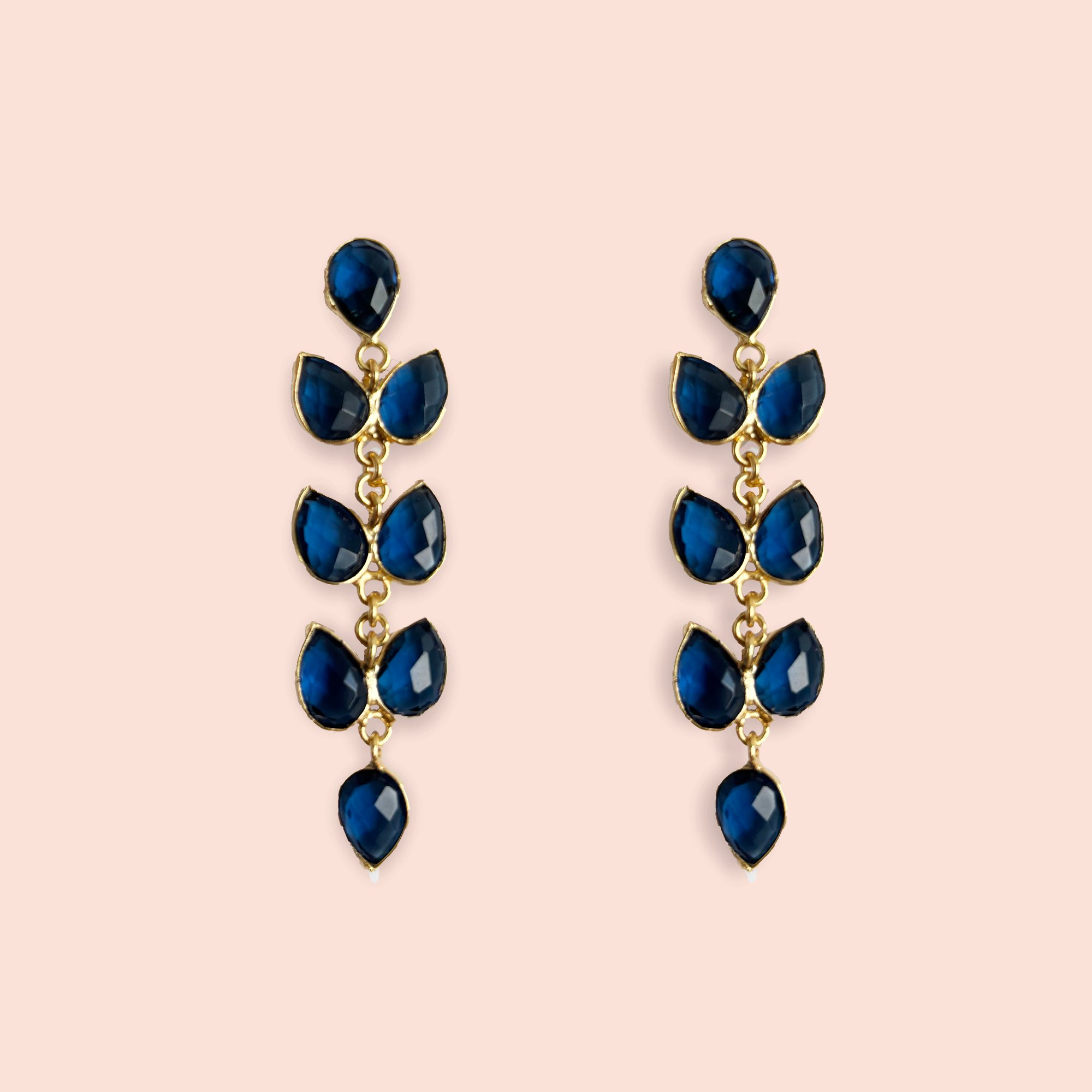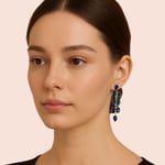Available in two sophisticated colorways—a deep sapphire blue or a classic onyx black—these earrings stand out for their play of reflections and slender silhouette, gracefully flattering the face.